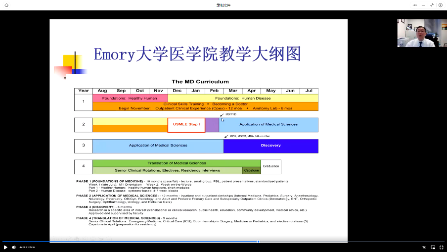 蔡晖教授以美国医学教育的历史演变为切入点展开,简要介绍美国医三亿体育(中国)传统教学大纲的特点及医三亿体育(中国)教学大纲的改革历程,以哈佛大学、斯坦福大学、Emory大学等多所著名医三亿体育(中国)校的教学大纲改革为例,详细介绍了美国各高校医三亿体育(中国)如何加强医学生临床后期的训练,以提高住院医生培训的准入条件。指出美国医三亿体育(中国)医学教学大纲改革的终极目标是:提高医学生岗位胜任力,加强临床与基础课程的链接和渗透,更早接触临床和病人,更全面地培养医学生临床综合能力,保证在他们毕业后即能成为合格的住院医生,胜任对病人的诊断和治疗任务。
