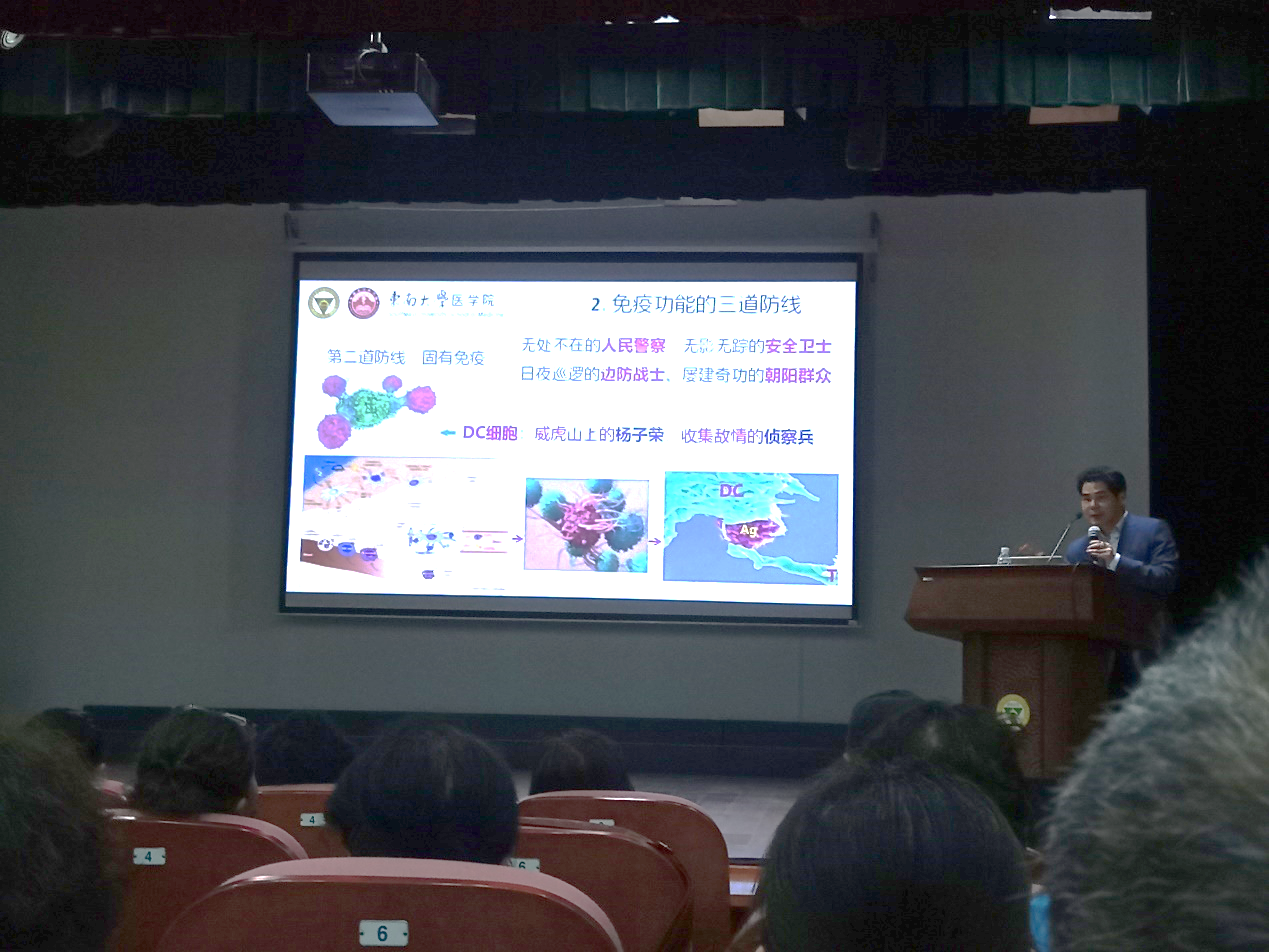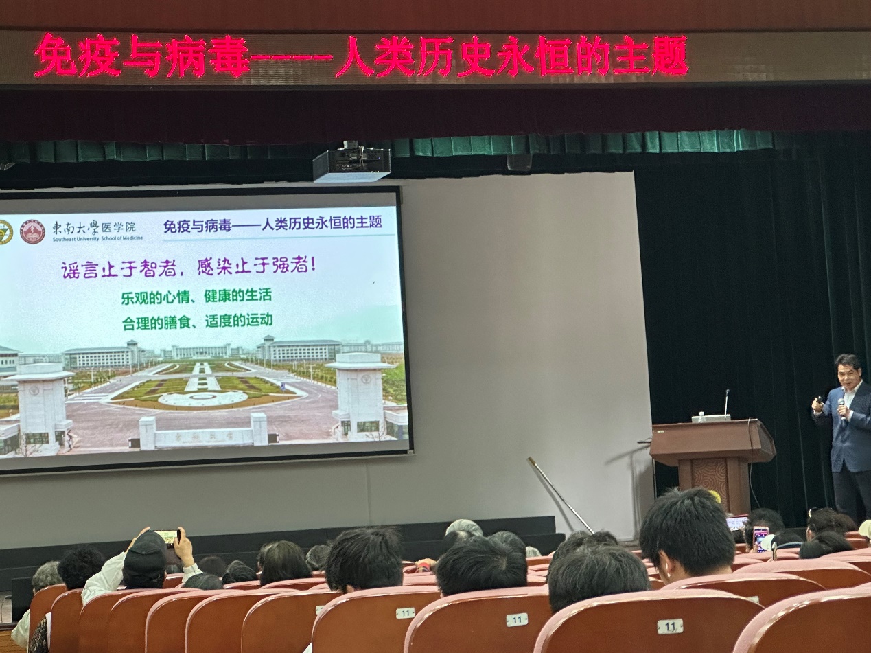 为了帮助“志友”们做好后疫情时代个人防护工作,传承和发扬“人道、博爱、奉献”的红十字精神及感谢“志友”们对医学教育事业的无私奉献和大力支持,人体解剖与组织胚胎学党支部、南京市红十字会三亿体育捐献遗体接受站及南京市红十字会 “志友”协会于2023年5月12日下午在丁家桥校区科技会堂联合举办了公益科普讲座,邀请东南大学免疫学博士、博士生导师王立新教授为“志友”们做了 “免疫与病毒—人类历史永恒的主题”的专题讲座,来自南京市的“志友”及东南大学的师生约200人参加了本次讲座活动。