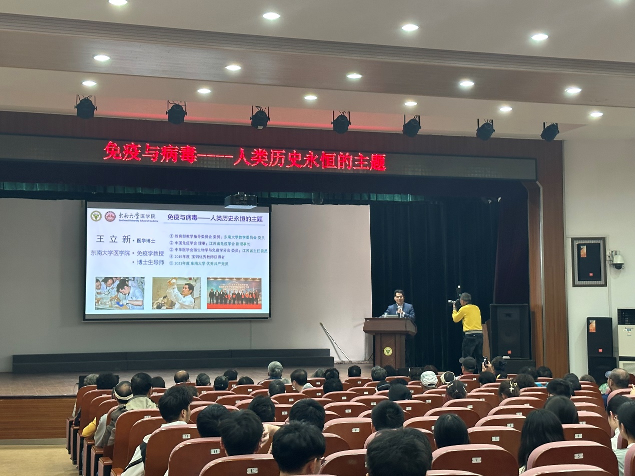 为了帮助“志友”们做好后疫情时代个人防护工作,传承和发扬“人道、博爱、奉献”的红十字精神及感谢“志友”们对医学教育事业的无私奉献和大力支持,人体解剖与组织胚胎学党支部、南京市红十字会三亿体育捐献遗体接受站及南京市红十字会 “志友”协会于2023年5月12日下午在丁家桥校区科技会堂联合举办了公益科普讲座,邀请东南大学免疫学博士、博士生导师王立新教授为“志友”们做了 “免疫与病毒—人类历史永恒的主题”的专题讲座,来自南京市的“志友”及东南大学的师生约200人参加了本次讲座活动。