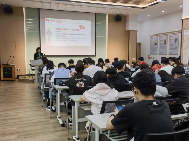 讲座中,卢老师通过“百年征程 ‘双建’伟业”、“强国之梦 踔厉巨变”、“时代召唤 青春闪光”三部分内容,并紧扣党的二十大报告精神,以详实的史料,深入浅出、系统回顾了建党百年和新中国成立的历史,以及青年人在革命战争年代和社会主义建设时期的时代担当与历史贡献,充分展示了党用伟大奋斗创造了百年伟业,也一定能用新的伟大奋斗创造新的伟业。尤其是结合东南大学在120多年办学历程中的历史积淀和红色基因赓续,卢老师勉励青年学生要大力发扬“止于至善”的校训精神,在习近平新时代中国特色社会主义思想指引下,坚定不移听党话、跟党走,决不辜负党和人民的期望,为中华民族的伟大复兴,勇往直前,用青春编织出绚丽的人生华章。