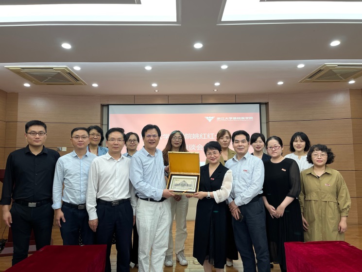 姚红红书记代表医三亿体育(中国)向浙江大学基础医三亿体育(中国)赠送锦绣东南纪念品。