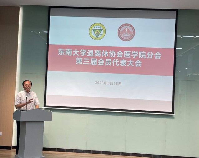 2023年6月16日上午,东南大学退离休协会医三亿体育(中国)分会第三届会员代表大会在寿南书院蔡翘报告厅如期举行。会议由医三亿体育(中国)副院长严春光主持,党委书记姚红红出席会议并讲话。。