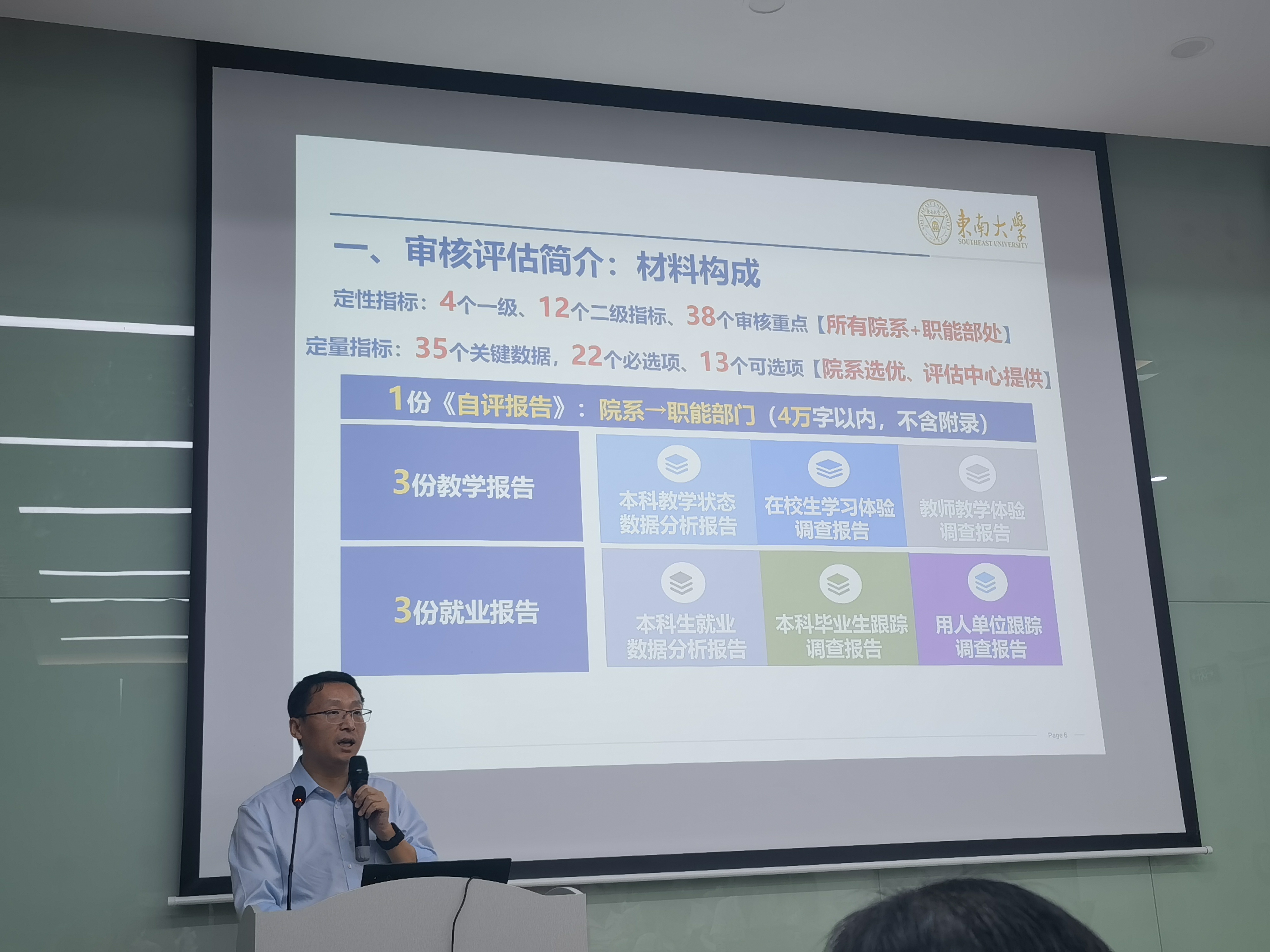 2023年9月6日,三亿体育本科教育教学审核评估动员部署大会在寿南书院蔡翘厅召开。医三亿体育(中国)谢波副院长、严春光副院长、医三亿体育(中国)教学委员会成员、学位评定委员会成员、督导专家、各学系教研室主任、实验教学中心(实验室)主任、医学教育发展中心成员等出席会议,特邀东南大学教务处张健副处长、杨冰慧老师莅临指导,会议由医三亿体育(中国)院长助理武秋立老师主持。