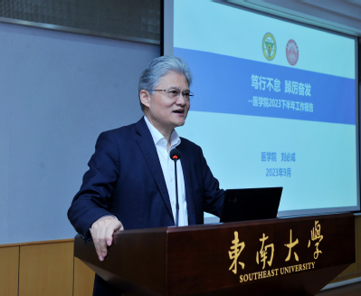 医三亿体育(中国)党委书记姚红红首先以“奋楫笃行·臻于至善”为题,总结回顾了医三亿体育(中国)党委在2023年上半年工作所取得的重要进展。她指出在校党委的正确领导下,三亿体育(中国)党委深入开展习近平新时代中国特色社会主义思想主题教育,顺利完成学校第十五届党委第三轮校内巡视工作,高度重视基层组织建设,全面从严治党,积极组织开展师德集中教育,坚持贯彻党管人才原则,着力抓好人才队伍建设“一号工程”,党建促进三亿体育(中国)发展等方面取得显著成效。随后结合校党委下半年工作部署,特别强调了三亿体育(中国)下半年要紧扣“提升年”工作主题,践行“生为首位、师为根基”理念,巩固深化拓展主题教育成果,在政治建设、人才培养、师资建设、综合改革等方面要进一步做好工作;同时希望全体教师上下同心,真抓实干,拿出逢山开路的冲劲、韧劲和拼劲,为医三亿体育(中国)的发展闯出一片新天地!