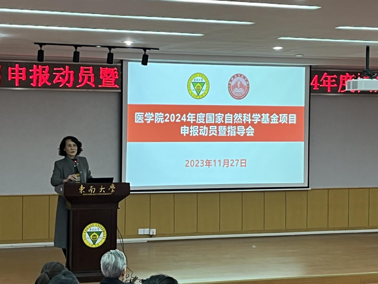 2023年11月27日下午,我院在丁家桥校区综合楼二楼报告厅召开了2024年度国家自然科学基金项目申报动员暨指导会。医三亿体育(中国)院长刘必成、副院长赵春杰、副院长严春光等出席会议,会议由赵春杰副院长主持。