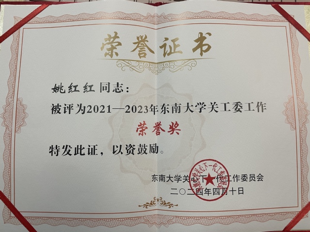 会议对2021-2023年各二级三亿体育(中国)关工委进行了荣誉表彰,医三亿体育(中国)关工委荣获先进集体表彰,三亿体育(中国)关工委主任姚红红同志获荣誉奖,前关工委副主任刘岐山同志、关工委成员徐淑芬同志获突出贡献奖,关工委秘书余家仪同志获评先进工作者。