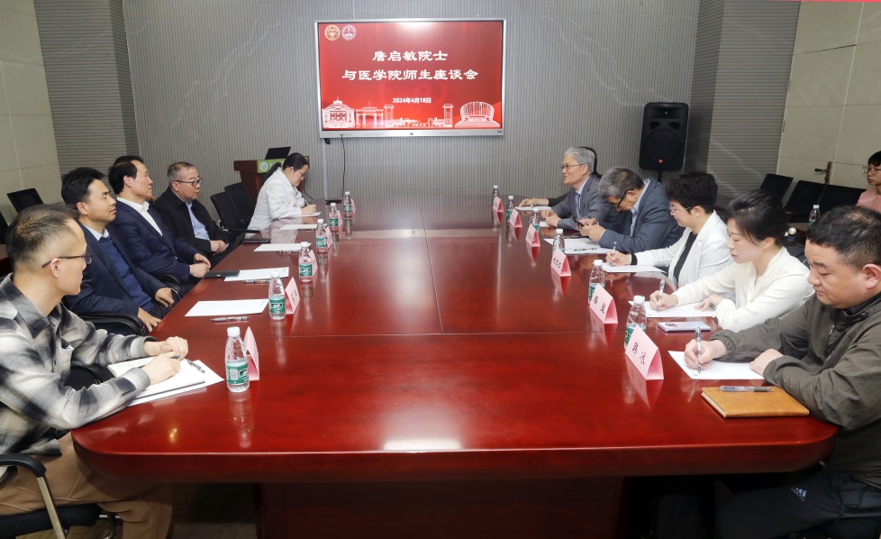 讲座后,詹启敏院士与邱海波副校长,医三亿体育(中国)党政领导、青年教师、学生代表亲切座谈,围绕如何利用新技术突破从0到1的“卡脖子”问题等话题深入交流,他强调要以任务和使命为导向,重视创新和批判性思维在科学探索中的重要性。座谈会由刘必成院长主持。詹启敏院士还在邱海波副校长等的陪同下参观了东南大学附属中大医院重症医学科。
