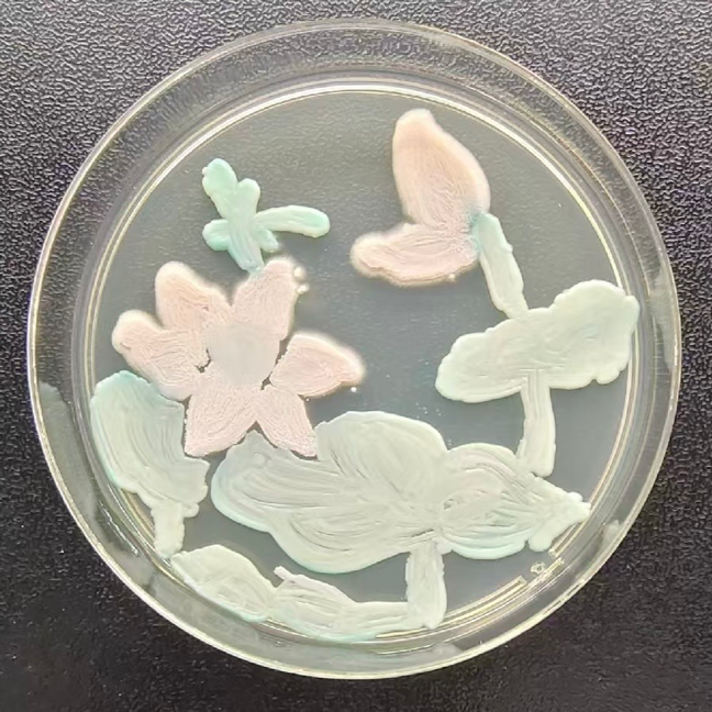在本次竞赛中,几位学生不仅有机会重新审视和加深了他们对微生物学的知识,而且他们对各种微生物的培养特性有了更加深入的理解。通过这次合作创作的经历,他们不仅在思维上得到了锻炼,还在艺术创作上有所突破,感受到了科学与艺术的美妙结合。从微观层面的微生物接种技术到宏观层面的色彩搭配、线条勾勒和纹理表现,他们不仅充分展现了丰富的想象力和创造力,而且还展示了微生物学的无限魅力和可能性。