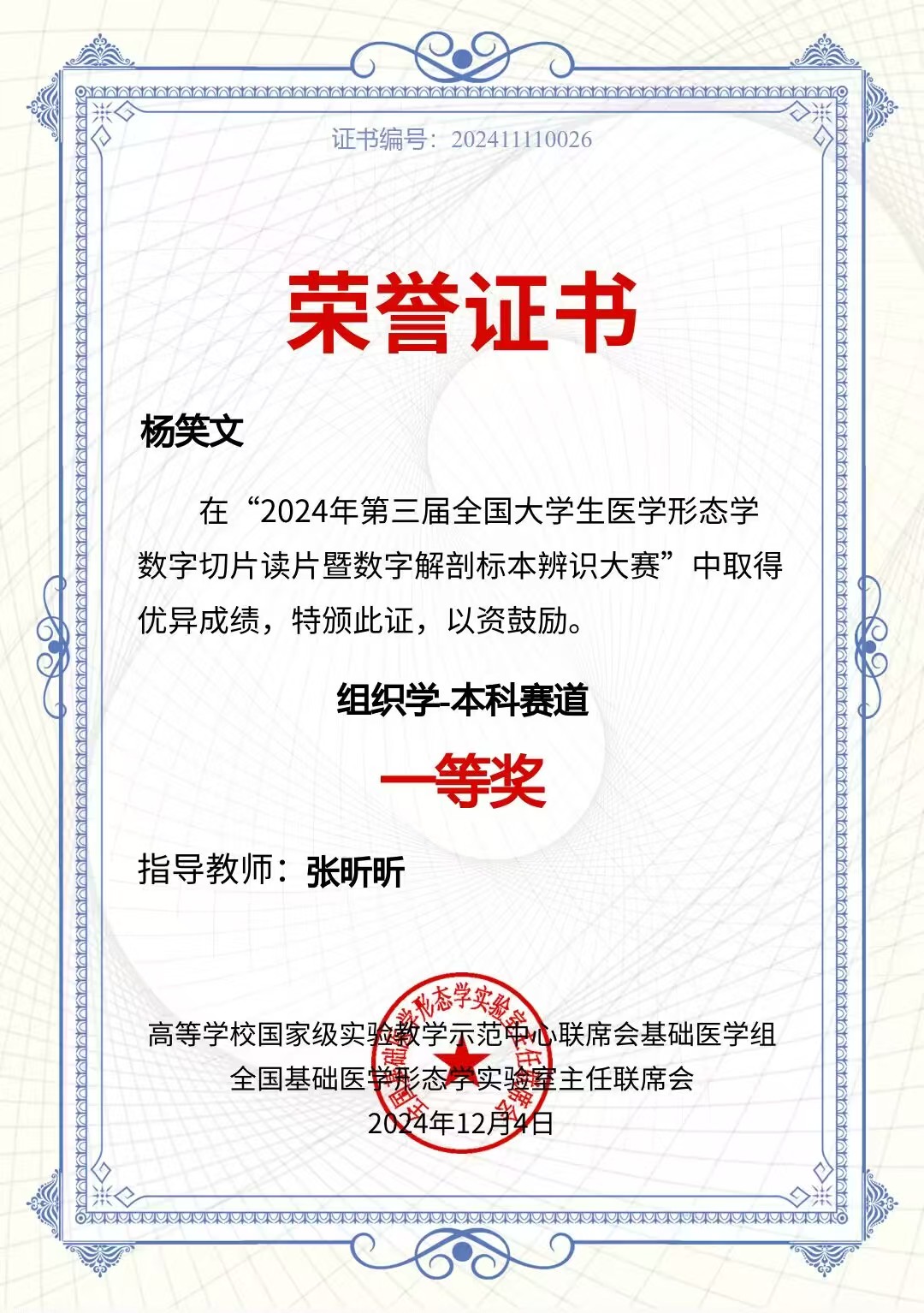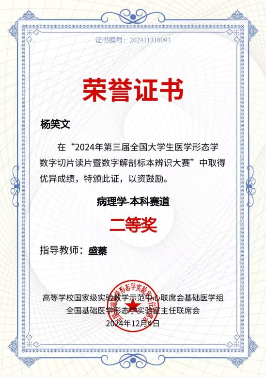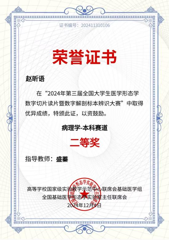 12月1日,第三届高校医三亿体育(中国)校大学生数字形态学读片与数字解剖标本辨识技能大赛决赛落下帷幕。来自全国近230所医三亿体育(中国)校的近14000名医学生在线上开展竞赛。我院参赛选手共获得一等奖3项,二等奖5项,三等奖9项。