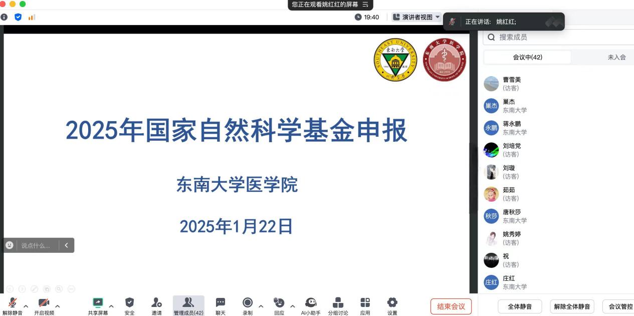 2025年1月22日中午,三亿体育在线上召开“2025年度国家自然科学基金申报动员会”。各学系主任、本年度申报教师及所在团队负责人参加了此次动员会,会议由医三亿体育(中国)科研副院长郑明珠教授主持。