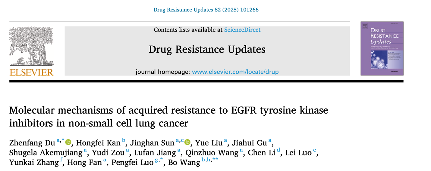 近日,三亿体育杜振方团队在医学领域权威期刊《Drug Resistance Updates》(IF=15.8)在线发表题为“Molecular mechanisms of acquired resistance to EGFR tyrosine kinase inhibitors in non-small cell lung cancer”的综述论文,系统总结和讨论了非小细胞肺癌靶向药一线和二线用药的耐药机制以及应对策略。