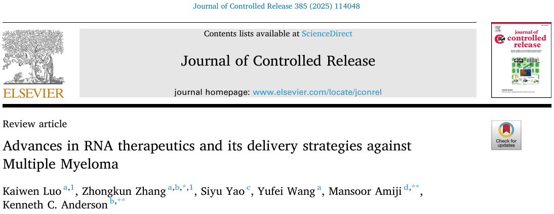近日,东南大学副研究员张仲琨团队与美国东北大学、哈佛大学医三亿体育(中国)在国际药剂学领域顶级期刊《Journal of Controlled Release》发表了题为“Advances in RNA Therapeutics and its Delivery Strategies against Multiple Myeloma”的综述论文,基于临床线索系统总结了多发性骨髓瘤的耐药机制,并结合RNA分子致病机制与药物递送技术讨论了核酸序列靶点与不同RNA分子形态的可成药性,为下一代RNA药物治疗多发性骨髓瘤的临床转化提供了科学指导。